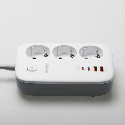 برند انرجایزر (Energizer) پس از تولید موفق کالاهای الکترونیک و ورود بازار ایران، به تولید لوازم جانبی از جمله سه راهی برق روی آورد و محصولات باکیفیت و قیمت مناسبی را روانهی بازار کرد. این چند راهی برق در ابعاد 102.9*155.9*42.5 میلیمتر و وزن 534 گرم قادر است خروجی یک پریز برق شهری را به 3 پریز برق، 2 پورت USB و 2 پورت تایپ سی (Type-C) تبدیل کند. همانطور که اشاره شد چند راهی برق انرجایزر مدل EPB3250W01EU به 2 پورت USB و 2 پورت تایپ سی مجهز شده است که به کمک آنها میتوان با اتصال انواع سیم شارژ یا شارژر، دستگاههای دیجیتال و موبایل را به سادگی شارژ کرد. این پورتها که از فناوری QC3.0 پشتیبانی میکنند، دارای نرخ جریان ولتاژ زیر هستند: USB-A: 4.5V/5A , 5V/4.5A – 5V/9V/12V/20V=3A (60W Max) USB-C: 5V/3A , 9V/3A – 12V/3A – 15V/3A – 20V/3.25A (65W Max) همچنین سه پریز برق معمولی این چندراهی نیز دارای شدت جریان خروجی 13 آمپر و حداکثر توان خروجی 3250 وات خواهد بود. این محصول با طراحی سفید رنگ و با یک سیم به طول 2 متر ارائه شده است و با بدنهی کوچک و جمعوجور خود، جای چندانی را اشغال نمیکند. با چندراهی برق انرجایزر میتوانید بجای استفاده از کلگیهای جداگانه برای شارژ تلفن همراه و دستگاههای دیجیتال خود، از یک همچین گجتی بهره بهره ببرید و از شر تبدیلهای دو به دو یا سه یه دو خلاص شوید. از دیگر نکات مهم این محصول جنس بدنه آن است که از پلاستیک با کیفیت و مقاوم ABS ساخته شده و ضد اشتعال تا دمای 850 درجه سانتی گراد است.